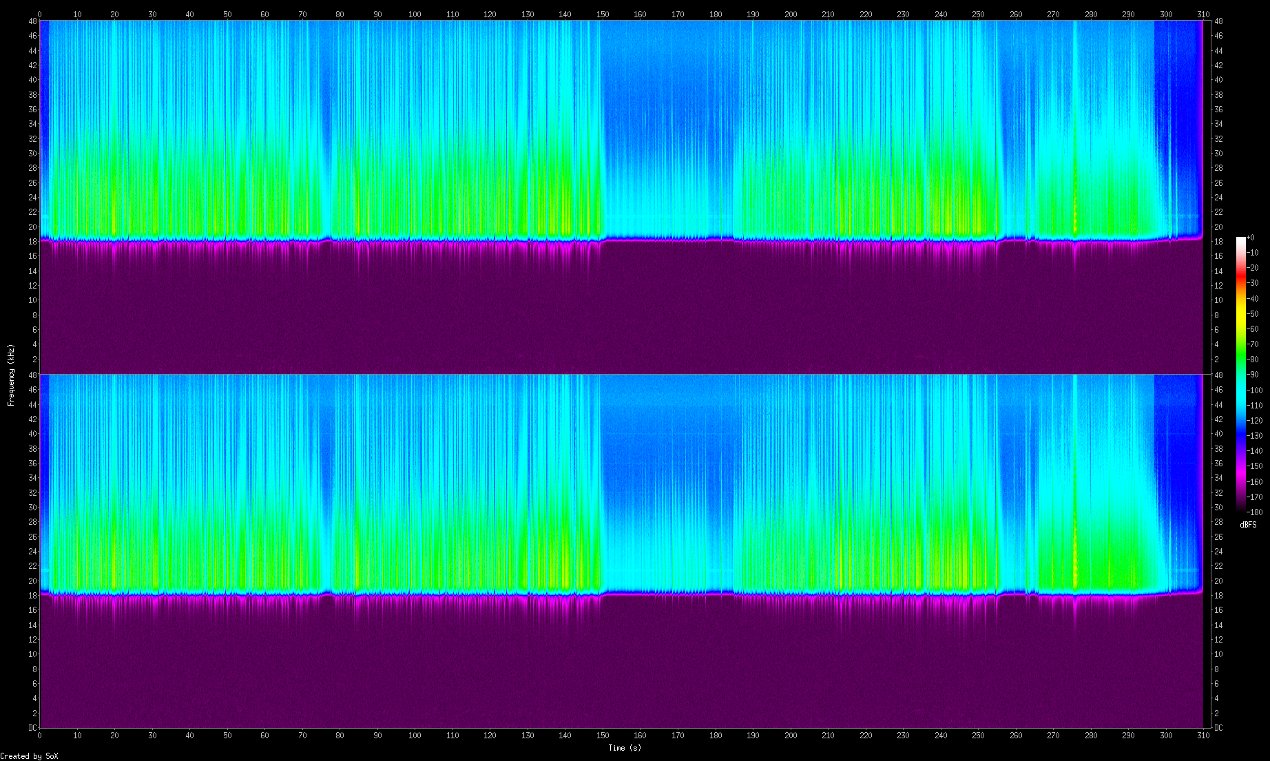 Можна зробити прекрасну перевірку, ви можете узяти і обрізати нижні частоти, й залишити тільки щось вище 16, 17, 18, 19 кГц тощо. (`type "%WL"`) do "sox.exe" "%%f" -V -D "%%~dpnf-19.flac" sinc 19k-0k. Й спробувати почути, що ви почуєте на реальній композиції, стандартному вашому обладнанні, в стандартних умовах, вухами вашими персональними, відповідного віку та спроможностей... Як вам таке?