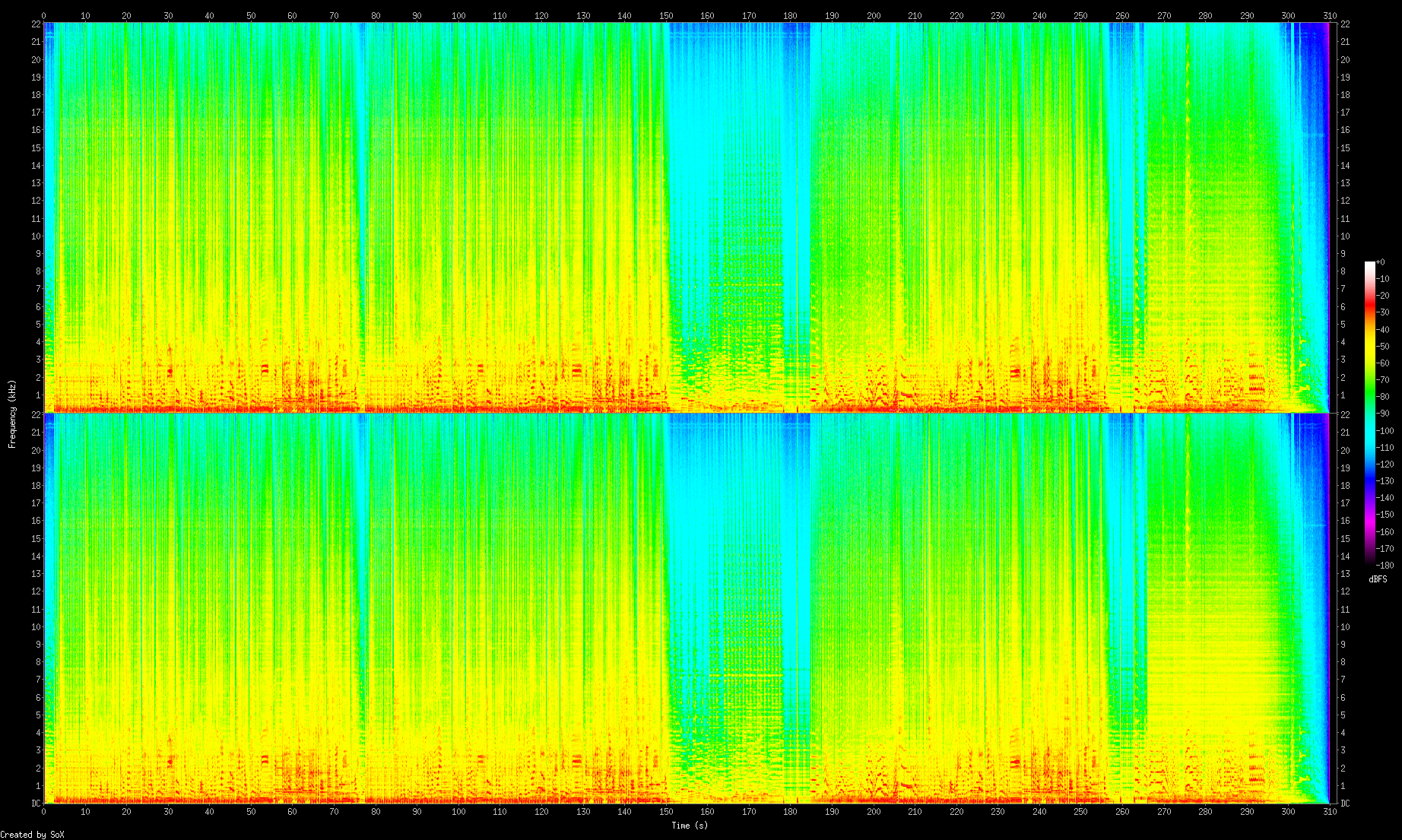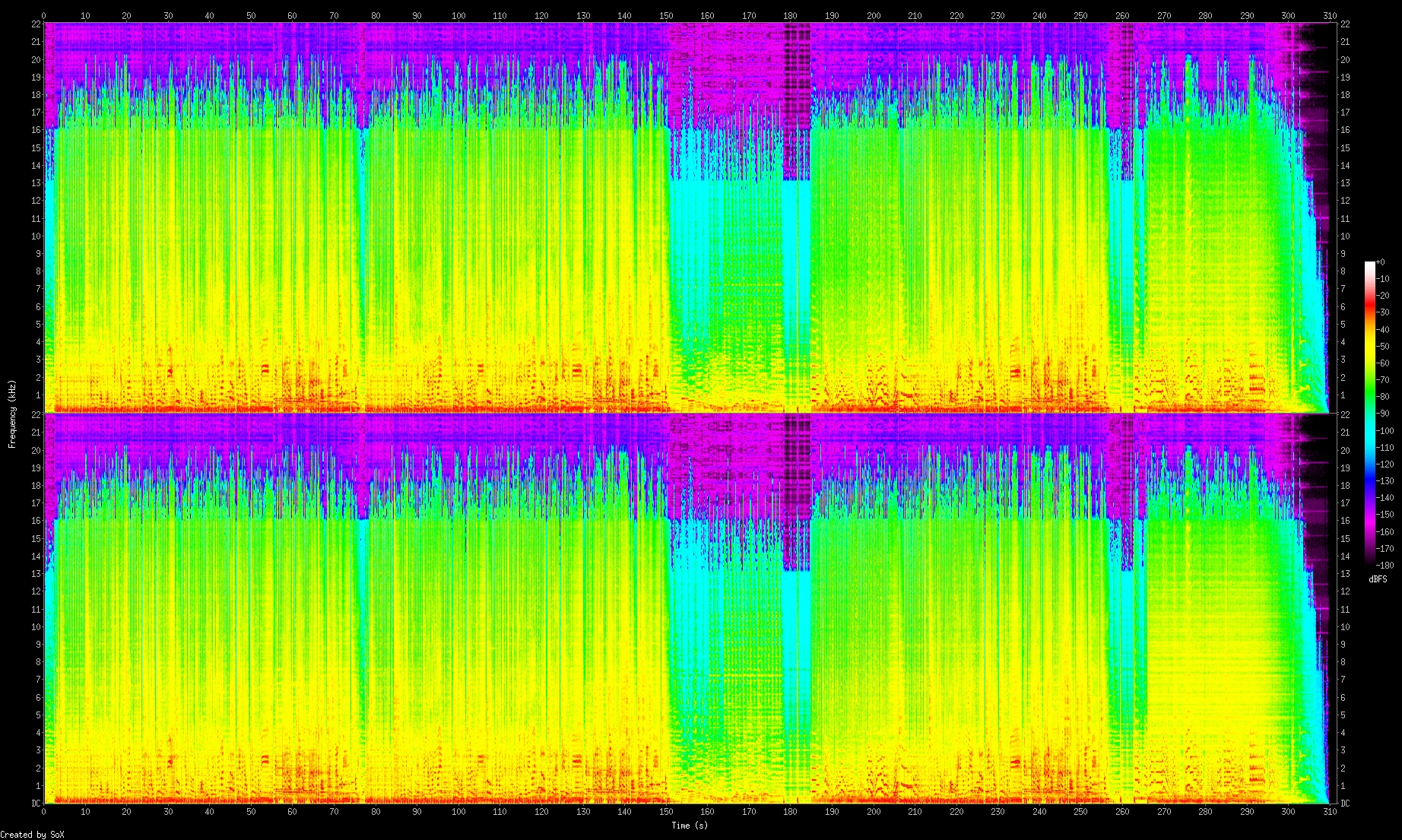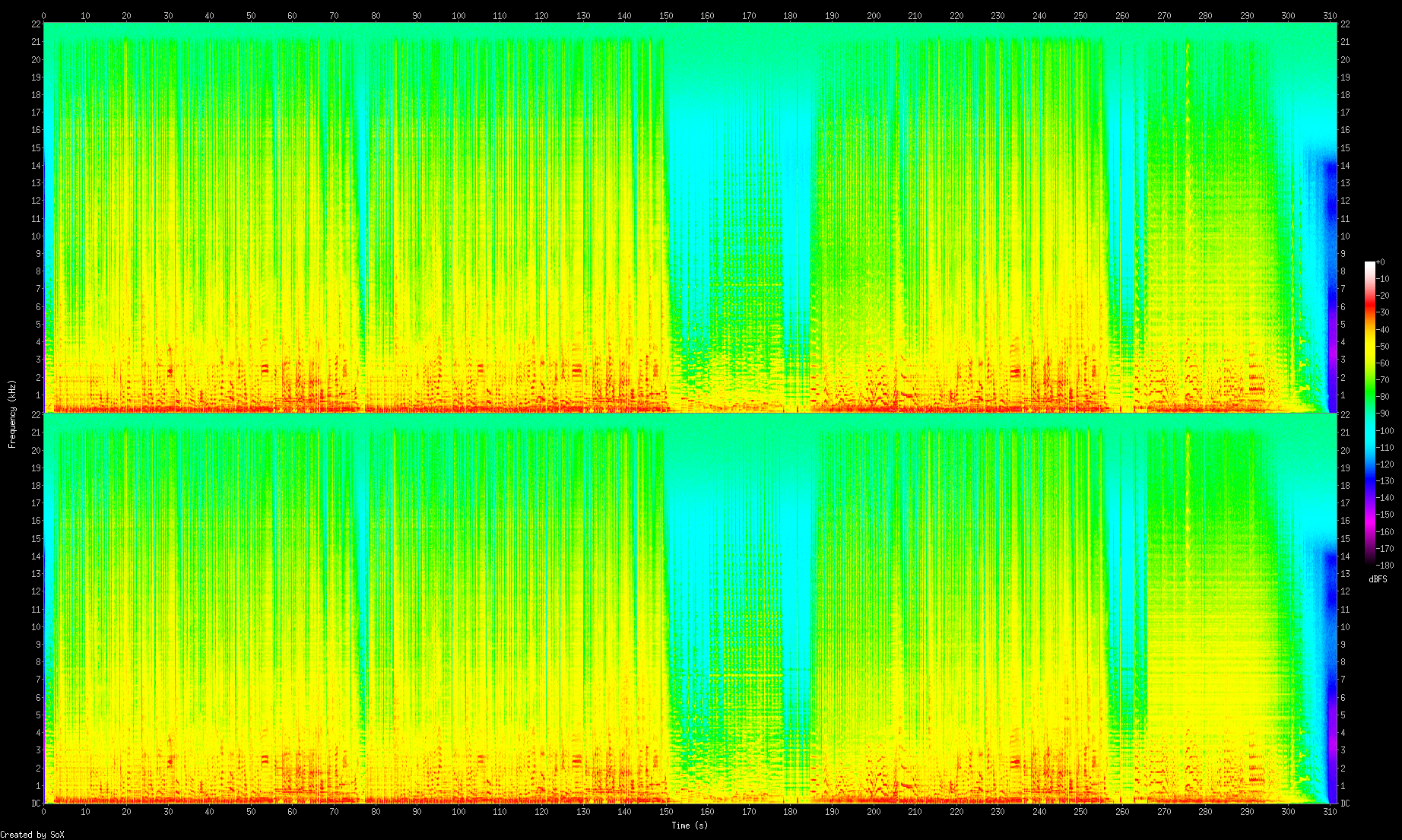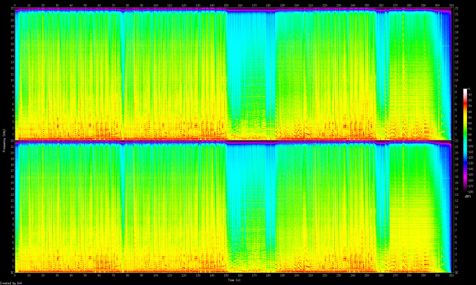 І гріх сміх у тому, що навіть цього, за умов якісного «вхідного» матеріалу, дійсно може вистачити. Й усі жахливі міфи, які склалися у колективному несвідомому з приводу 'mp3 128' — базуються на тому, що на рубежі тисячоліть його отримували апконвертом чи багатократною перегонкою, по схемі: 96-160 квазі-СD 128 суперквазі-CD 320 128... Це наближений еквівалент переписування з касети на касету десятки разів. Хто пам'ятає.. Зате мені досі трапляються «фірмові» CD постсовкового виробництва, банальна перевірка частотних спектрів яких видає ℜ їхнього пращура — мp3 — із головою.