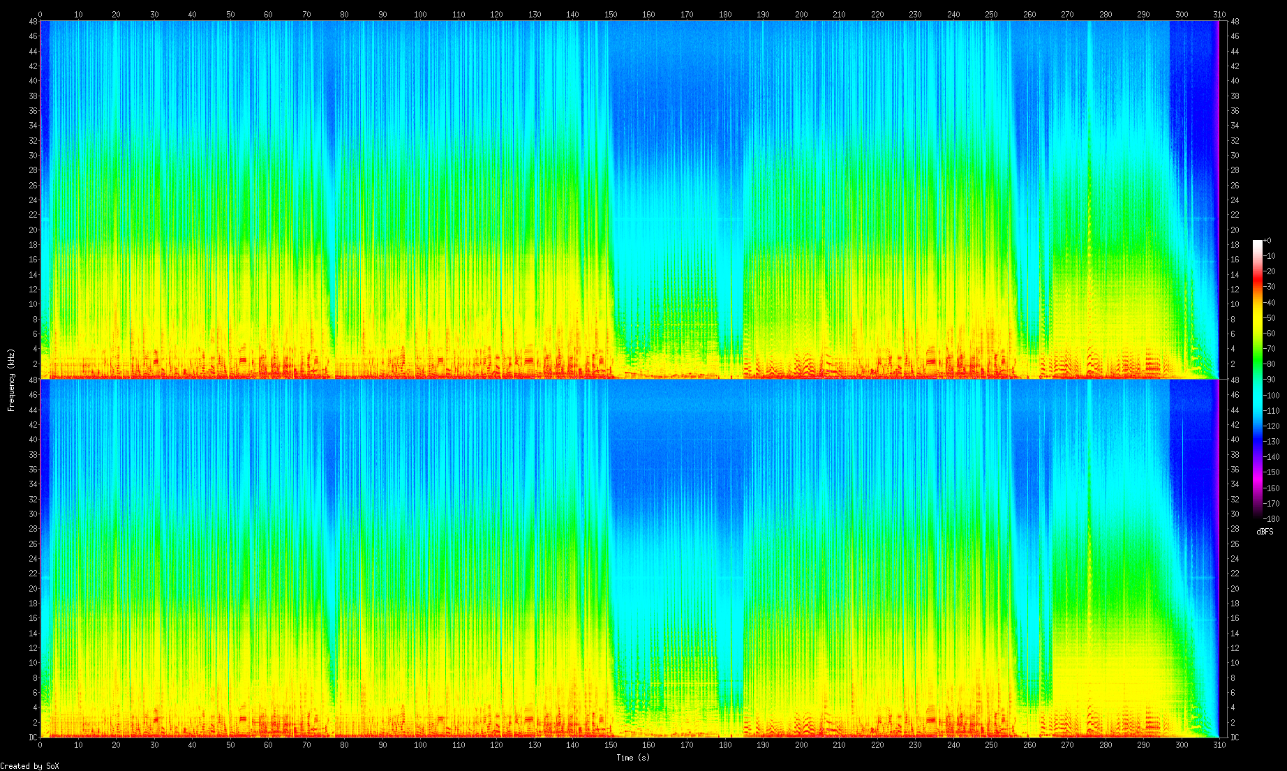 P. P. S. Як отримати «найчистіший» (хе..) 24/44? Аааа... (`type "%WL"`) do "sox.exe" "%%f" -V -D "%%~dpnf-2444-D-s.flac" rate -s 44100 -D — вимикає автоматичний дітерінг (--no-dither); rate -s - зменшує т.з. 'transition band-width' зі стандартних 5% до 1%. Тобто 99% частотної широти буде збережено. 21830 приблизно Гц. Що воно дасть? Я не знаю. Спакойствіє?**